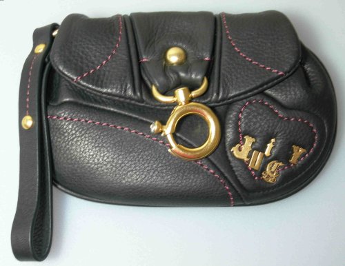 Authentic Juicy Couture Black Leather (Pink Stitching) Wristlet / Wallet - New